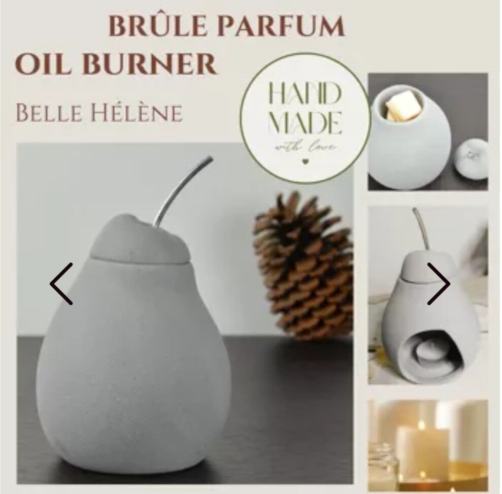 Brûle parfum pomme d'amour ou poire belle Héléne en ciment mat.